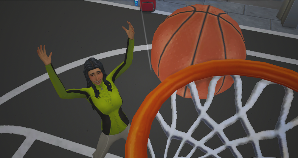 Scooter, this is your moment. Upon this flat top of...frighteningly detailed asphalt, you are the basketball queen.