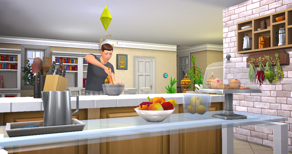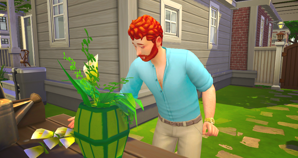I didn't really have any intention for Percy to complete his aspiration but I bought a few rare flower packets for him, and he got a cowplant berry in one. Which is the last thing he needed to complete his aspiration, so...why not.